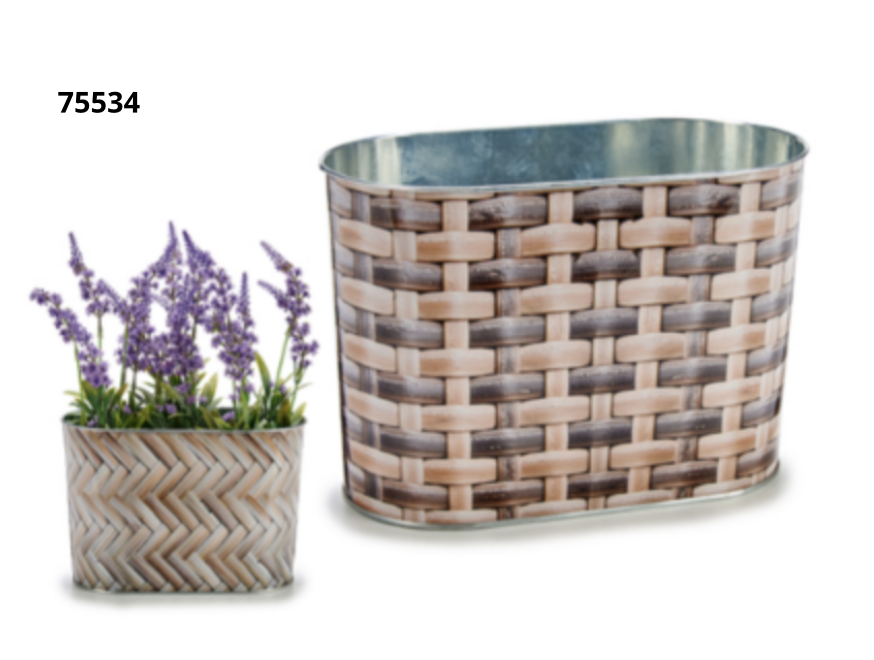 Macetero metal ovalado alto gran mimbre