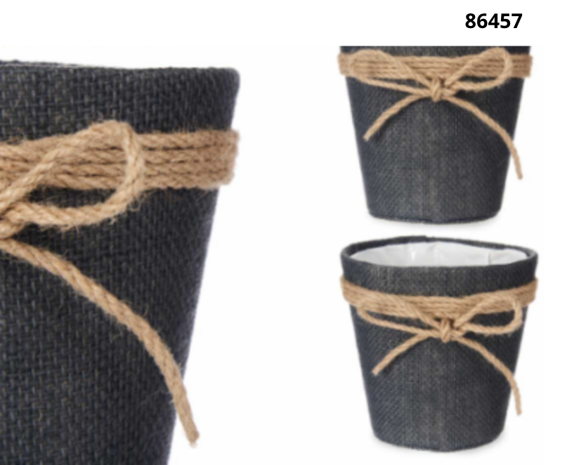Macetero tela con lazo 18x16cm blancoMacetero tela con lazo 12,5x12cm gris