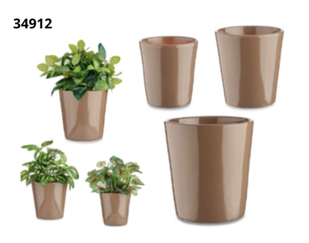 Set 3 macetas ceramica conica 14 17 22cm taupe